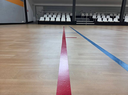 We offer high precision game lines for an indoor basketball and multi-use gym floor that are installed using an American made game taping machine, followed by high performance two component urethane paints. We perform all the cleaning and prep work to ensure the lines last as long as they possibly can. We can install game lines on timber plank, vinyl floors like Tarkett Omnisports and Gerflor Taraflex, and almost any other surface.